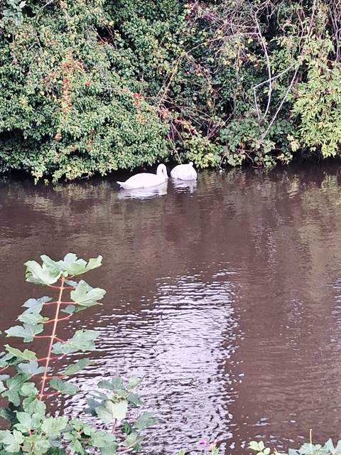 We assure him we will be fine as we are experienced cyclists and also have a back up van if required. To get onto the canal side we have to cross the railway line, the only way to do this is to use a footbridge, so we start the ride by carrying the bikes up and down a flight of stairs. then we join the path leading towards the canal, Graeme is leading and only sees the part of the sign that says Leeds, so he turns right, I have to call him back and point out the rest of the sign. The path leads us down onto the canal side, it is wide flat and very scenic with locks and wildlife, so after the little difficulties at the start we are happy and on our way. passing nice canal side properties and old mills. All of which we find very interesting