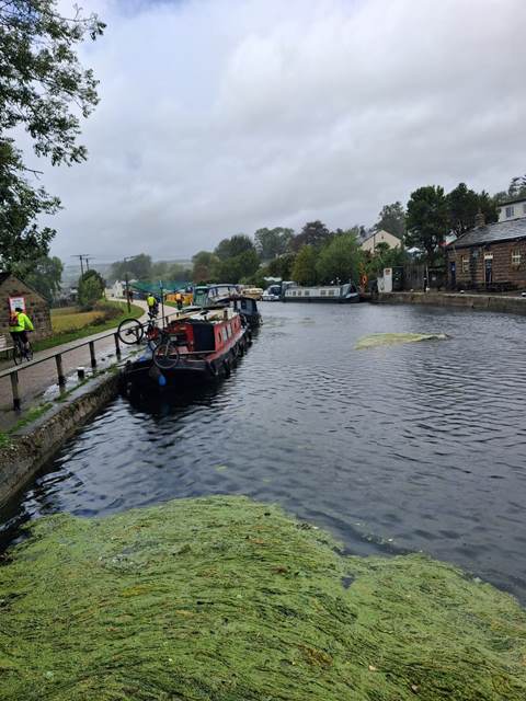 Onwards towards Skipton and then to Gargrave for the overnight stay. As we are coming into Skipton on the outskirts we pass a canal tour trip boat, it is full of tourists and as is the way we all wave at each other, I feel sorry for them as the windows are all steamed up so the view would not be great. They probably feel sorry for us cycling into a head wind in the rain.