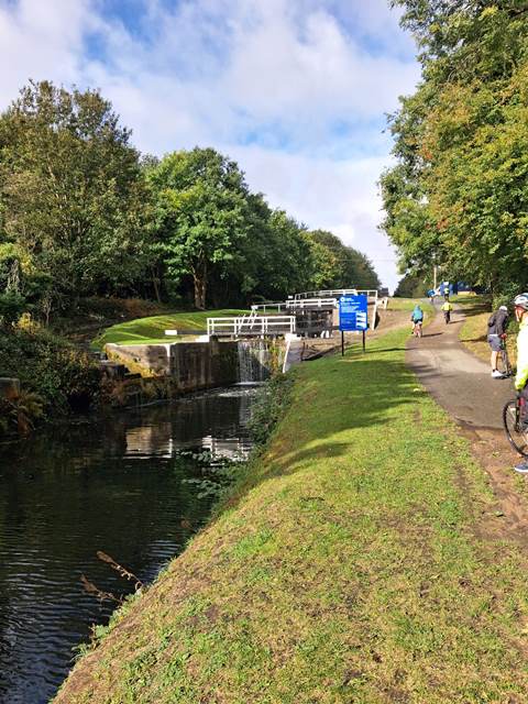 Fortunately the pub is not too far off the canal path even had an overhang to keep our bikes dry, so a little detour was all it took. Getting back out into the rain took more of an effort after we had got comfortably warm and dry. Suitably refreshed and its time to tackle the five locks.